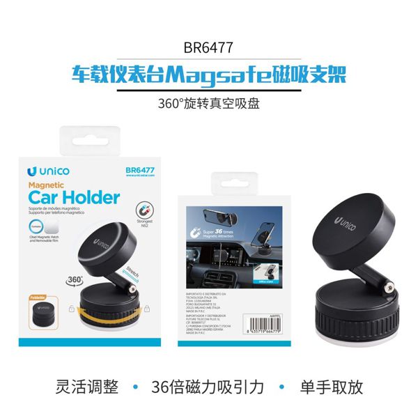 SOPORTE DE MÓVILES PARA COCHE MAGNÉTICO GIRATORIO 360 CON VENTOSA SUCCIÓN FUERTE